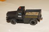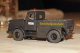 Das Modell stammt von der Firma Weinert, hauptsächlich Weißmetall mit Ätzteilen zur Detaillierung. Da der Bausatz aus einer Sammlungsauflösung stammte, fehlte die Bauanleitung, was Hans aber nicht von seinem Projekt abschreckte. Grundsätzlich hat er Kleinigkeiten verändert. So hat er den Druckluftrechts durch einen Tank ersetzt. Auf dem Dach hat Weinert ein Anhängerdreieck geplant. Hans hatte aber Fotos von K 631, die dort eine Rundum-Leuchte hatten. Dies gefiel ihm besser und er baute eine solche Leuchte an. Die Rückleuchten entstanden aus fotogeätzten Rückspiegeln. Die Weinertsche Fqahrerfigur erhielt Kopf und Extremitäten von Preiser. Die Vorderachse wurde höher gelegt und die Hinterachsführung musste verlegt werden, da sie nicht mittig war. Heraus kam wieder ein Topmodell.