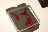 Den U-förmigen Halter für Schleifbänder kennt wohl fast jeder Modellbauer. Uwe verwendet ihn gerne für Schleifarbeiten an seinen Motorradtanks oder den Schutzblechen, also an gewölbten Flächen. Leider reißen die Schleifbänder oftmals recht schnell an den Schlaufen, meist bevor das Schleifmedium abgenutzt ist. Reparieren/kleben ist wegen des Drucks, den die dünnen Haltestifte auf das Schleifband ausüben, selten haltbar. Da erscheint der „Inner Angle Surface Sander Sandpaper Holder“ von DSPIAE als sinnvolle Alternative. Hinter der sperrigen englischen Bezeichnung verbirgt sich ein einstellbarer Schleifbandhalter aus solidem Metall. Der große Vorteil gegenüber dem U-förmigen Halter ist die Einspannmöglichkeit der Schleifbänder. Hier wird keine Öse über einen Stift gezogen, vielmehr wird das Schleifband mit zwei schraubbaren Klemmen gehalten. Ähnlich wie die Sägeblätter in einer Laubsäge. Abgesehen von der hoffentlich längeren Haltbarkeit kann man auch selbst zugeschnittene Schleifbänder einspannen. Hierzu eigenen sich auch sehr feine Schleifleinen aus den Polierkits.