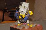 Ein Cafe in Gemischtbauweise soll 1:24 sein, der Maßstab wird aber nicht für alle Teile eingehalten. Verkauft hat er sich mit einem Tori, wie man sie überall in Japan sehen kann: Das Teil ist leider nicht plastisch, war aber auch nicht teuer. Eine weiter Japanische Spezialität sind die naturgetreuen Nachbildungen von Speisen, Shokuhin Sampuru, die man in den Auslagen von Restaurants bestaunen kann. Pascal zeigte uns einen Nudeltopf. Zum Schluss entführte er uns noch in die Fantasy Welt. Der Thunderjaw Kit, den er zu einem guten Preis erwerben konnte, ist ein Snapfit Modell, das auch unbemalt recht gut aussehen soll.