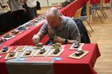 Ein Cafe in Gemischtbauweise soll 1:24 sein, der Maßstab wird aber nicht für alle Teile eingehalten. Verkauft hat er sich mit einem Tori, wie man sie überall in Japan sehen kann: Das Teil ist leider nicht plastisch, war aber auch nicht teuer. Eine weiter Japanische Spezialität sind die naturgetreuen Nachbildungen von Speisen, Shokuhin Sampuru, die man in den Auslagen von Restaurants bestaunen kann. Pascal zeigte uns einen Nudeltopf. Zum Schluss entführte er uns noch in die Fantasy Welt. Der Thunderjaw Kit, den er zu einem guten Preis erwerben konnte, ist ein Snapfit Modell, das auch unbemalt recht gut aussehen soll.