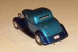 Der Ford istin lila gespritzt und man kann ihn in zwei Versionen bauen. Lilaist nicht so meine Farbe, aber durch die Zweiteilung ist eine Zweifarbenlackierung ein Muß. Es ist in Mittelblau oben und Dunkelblau unten lackiert. Auch wenn es ein Snap Tite ist, sind bis auf den V8 Motor alle Teile dabei. Ein schöner Innenraum, ein Chassis mit Srahlachsen, sehr schöne Chromteile und Flammenaufkleber.